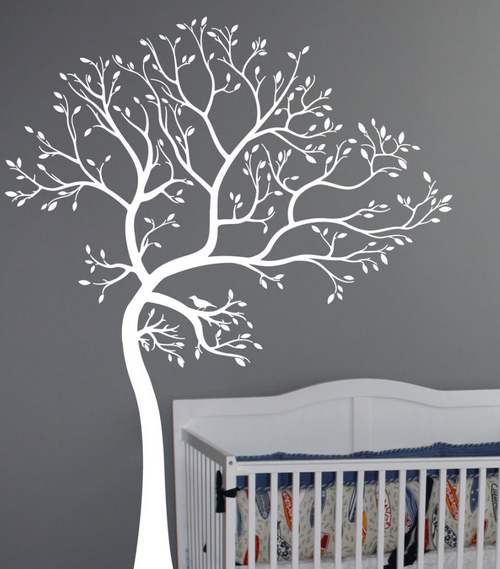 Приведенные примеры, конечно же, потребуют значительных затрат времени. Строительные магазины предлагают альтернативу долгой ручной работе – виниловые наклейки на стену с изображением дерева, представленные в огромном ассортименте. Их большим плюсом считается мгновенное приклеивание, возможность влажной уборки при загрязнении и бесследного удаления со стен.