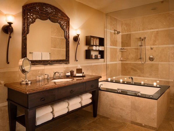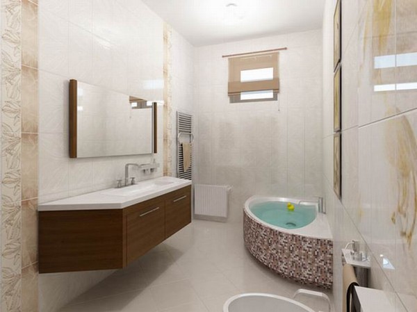 Также хорошим цветом ванной комнаты по фен-шуй считаются все пастельные оттенки – серый, бежевый, кремовый, персиковый и т.д. А вот яркие и темные тона рекомендуется использовать в интерьере ванной лишь в незначительном количестве. При этом, если вы выбрали несколько оттенков для оформления ванной комнаты, совмещайте их так, чтобы яркие и темные тона находились в нижней части помещения. Например, если цвет плитки совпадает с правилами фен-шуй, но вы хотите украсить стены какими-нибудь яркими декоративными вкраплениями, делайте это внизу, а верх стен и потолок оформляйте в пастельных тонах.
