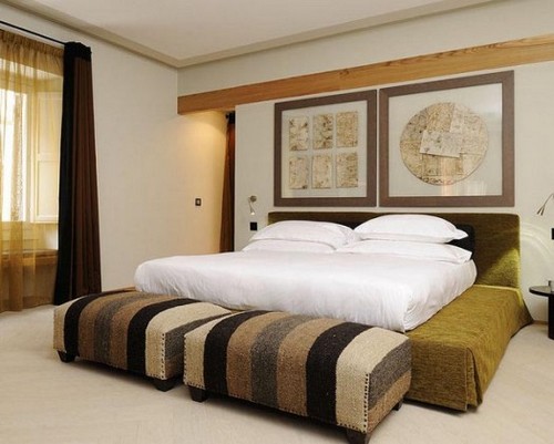 Интересно и органично смотрится текстиль в итальянском интерьере. Окна украсьте шикарными шторами из органзы. Очень часто шторы используют для украшения потолка и стен. Например, невероятно нежно и шикарно смотрятся настенные занавесы с драпировкой или гобелены, а портьеры возле кровати и над ней в виде балдахина сделают обстановку в спальне очень романтичной.