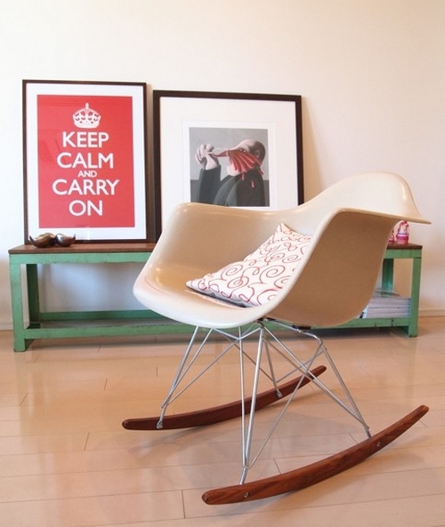 Легкими и компактными являются пластиковые кресла-качалки с металлическим механизмом раскачивания. Данные изделия могут выпускаться в обширной цветовой гамме, зачастую это яркие кресла, которые очень удачно вписываются в современный интерьер.