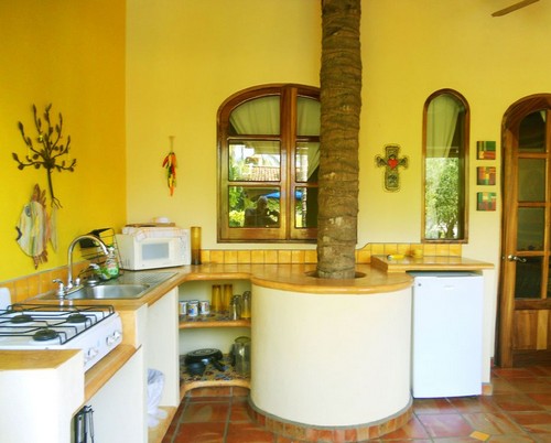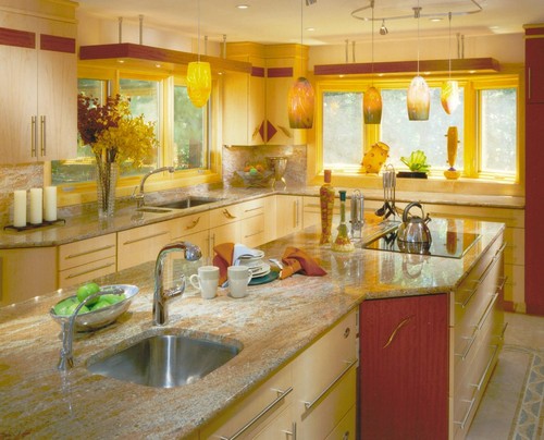 Многие дизайнеры не согласны с выбором желтого цвета для кухни, так как они считают, что сложно подобрать нужный оттенок. Но, вместе с этим, они советуют сочетать желтый с другими цветами. Так, желтая кухня с темным оттенком, стремящимся к оранжевому, хорошо сочетается со всевозможными деталями коричневого, красновато-коричневого, кирпичного, цвета зеленого лайма, а иногда даже серебристого и черного цвета.